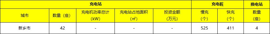 基础设施:截至2017年底,新乡市充电站保有量42座,换电站保有量4座;充电桩936个,其中:慢充525个,快充411个。