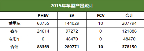 2015年国内企业生产各类新能源汽车共37.8万辆,截至2015年底,累计生产总量达到49.5万辆,其中纯电动汽车生产量达到37.1万辆,形成了纯电驱动为主导的新能源汽车市场格局。几类新能源汽车产量由高到低依次为:纯电动乘用车、纯电动客车、插电式乘用车、纯电动专用车、插电式客车,其中纯电动乘用车全年共生产14.3万辆,月均超过1万辆。
