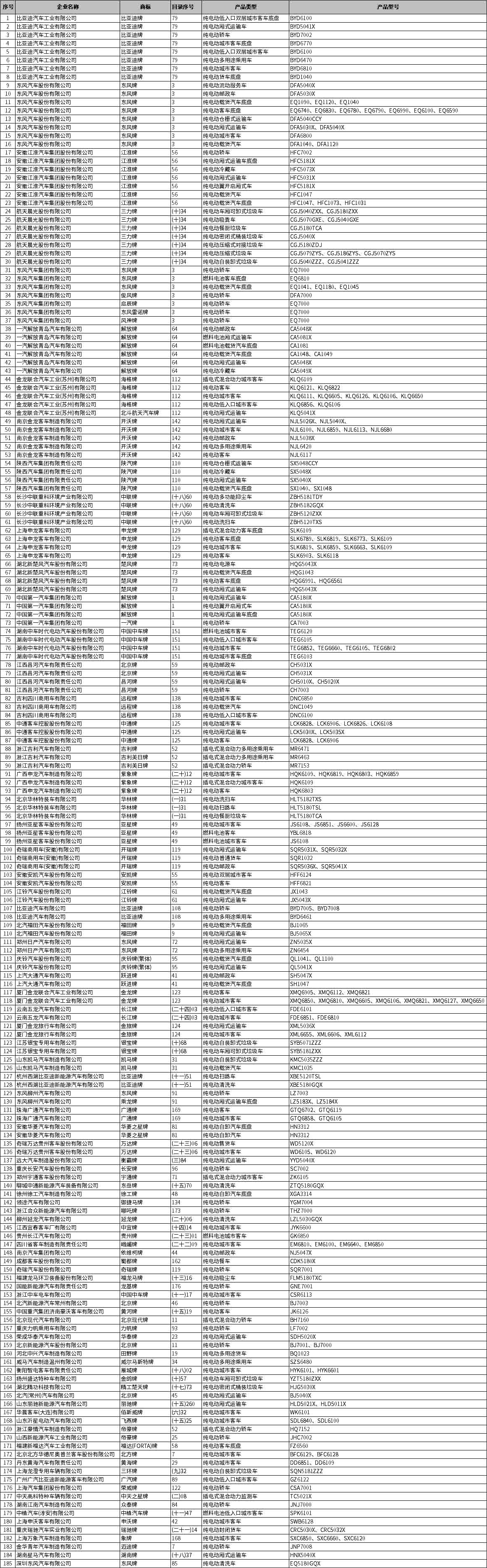 2、燃料种类:本批次纯电动产品共计167款(含乘用车28款;客车41款;专用车75款;底盘23款);插电式混合动力产品10款(含乘用车5款;客车3款;专用车1款;底盘1款);燃料电池产品8款(含客车5款;专用车1款;底盘2款)。