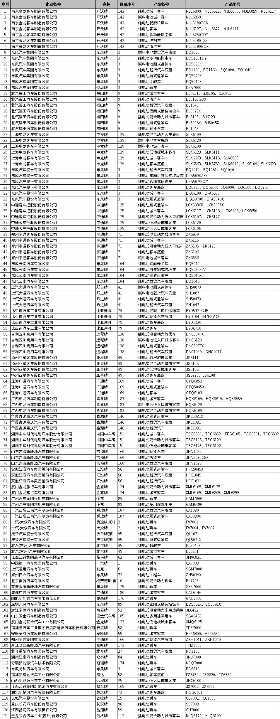 2、燃料种类:本批次纯电动产品共计123款(含乘用车18款;客车34款;专用车50款;底盘21款);插电式混合动力产品13款(含乘用车2款;客车9款;专用车1款;底盘1款);燃料电池产品11款(含客车5款;专用车3款;底盘3款)。