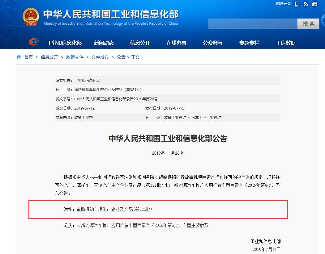 20190715-第321批道路机动车辆生产企业及产品-节能与新能源节选