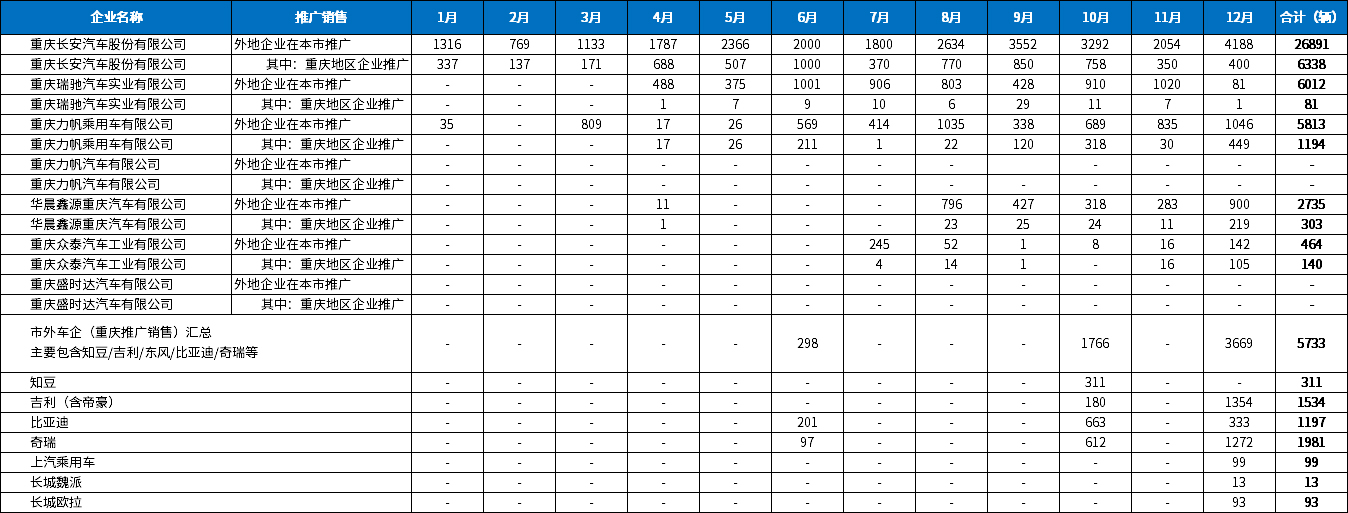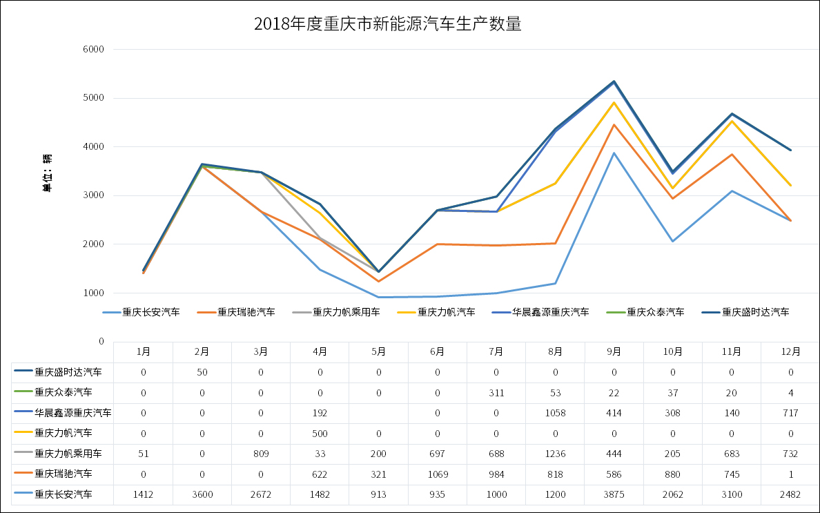 五、2018年度重庆市新能源汽车生产、推广销售统计