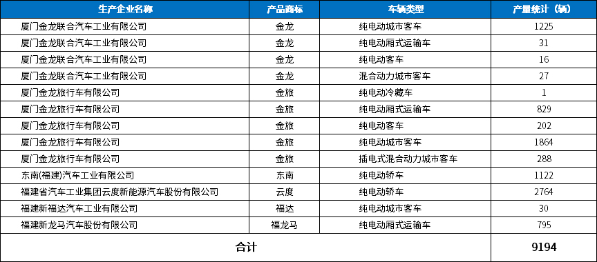 经过多年的努力,福建省新能源汽车产业发展较好,新能源客车、动力电池等产品技术水平均处于全国前列,已形成新能源汽车产业发展的集聚效应。全省新能源汽车整车生产企业9家,基本涵盖了所有类别的新能源汽车产品。