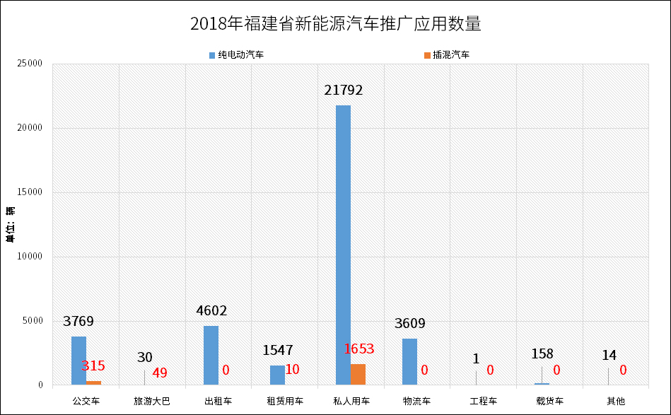 2018年,福建省推广应用新能源汽车33926辆,其中推广应用新能源公交车4084辆。截至2018年底,福建省累计推广应用新能源汽车71570辆,其中公交车12227辆。