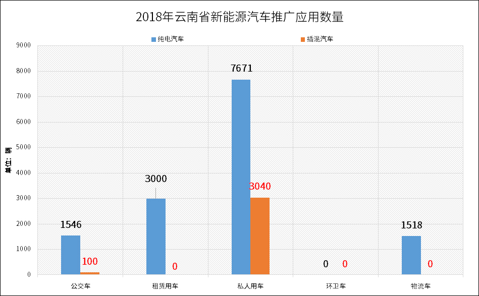 推广概况:2018年云南省全年推广新能源汽车16875辆,增长45.79%,其中乘用车13711辆,客车1646辆,物流车及专用汽车1518辆