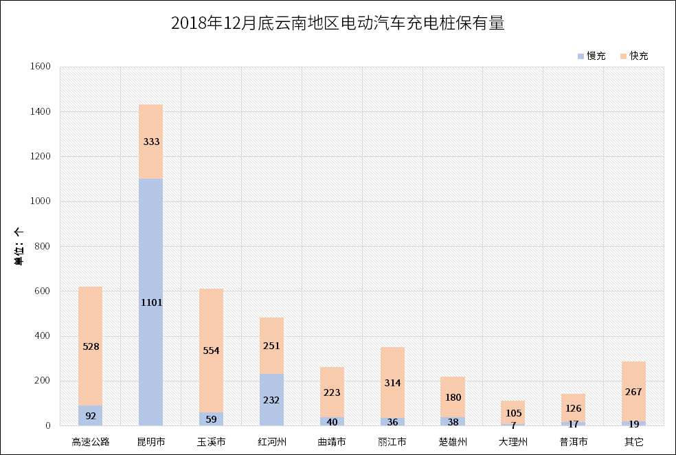 基础设施:2018年云南省新增公共充电桩4522个,其中直流充电桩2881个,交流充电桩1641个