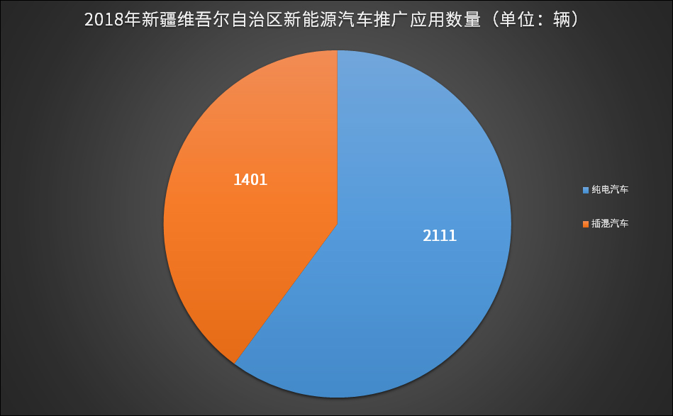 推广概况:2018年新疆15个地州市共推广新能源汽车3512辆,含纯电动汽车2111辆,插电式混合动力汽车1401辆