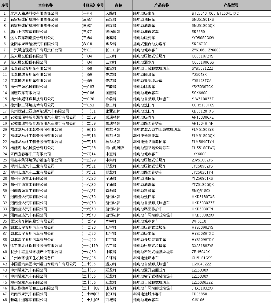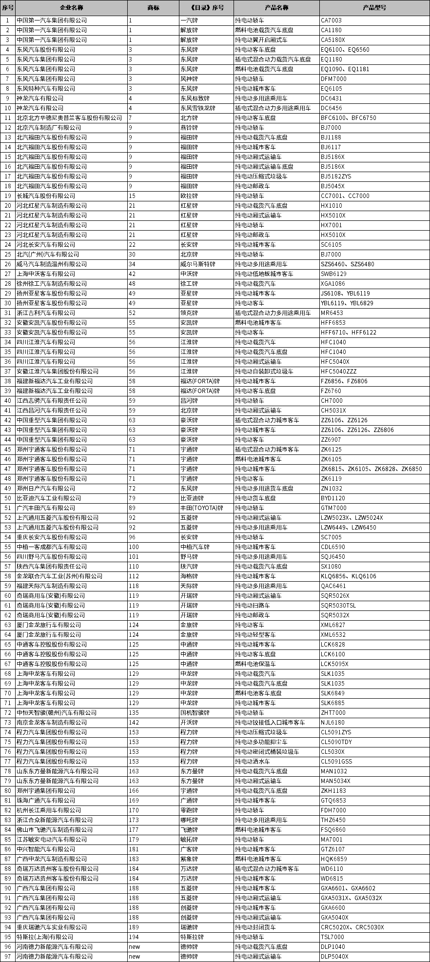 2、燃料种类:本批次纯电动产品共计125款(含乘用车19款;客车30款;专用车61款;客车底盘4款;专用车底盘11款);插电式混合动力产品8款(含乘用车2款;客车4款;专用车1款;专用车底盘1款);燃料电池产品12款(含客车5款;专用车4款;客车底盘1款;专用车底盘2款)。