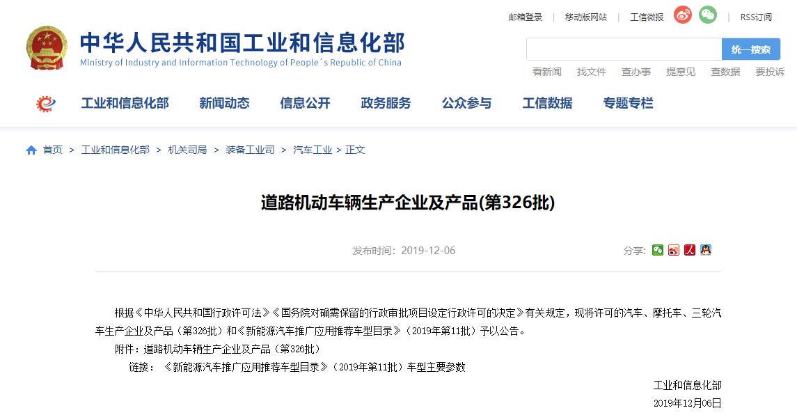 20191206-第326批道路机动车辆生产企业及产品-节能与新能源节选