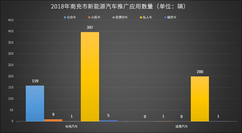 推广概况:2018年南充市推广应用新能源汽车773辆
