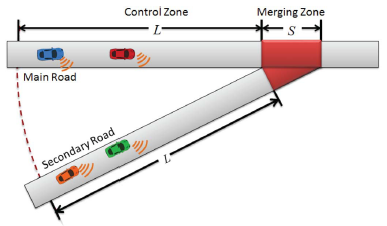 一般来讲,交叉口上的交叉顺序由交通灯或停车标志控制。在合流公路的情况下,匝道计量是调节合流到高速公路的车辆流量的一种常用方法,但也意味着在第二条道路上的车辆必须停车以减少交通拥挤,这两个场景如下图所示。
