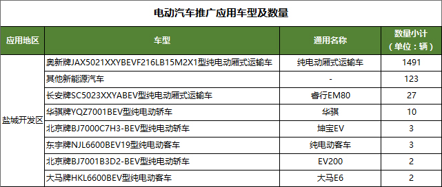 2015年1~12月底盐城市电动汽车推广应用车型及数量见下图: