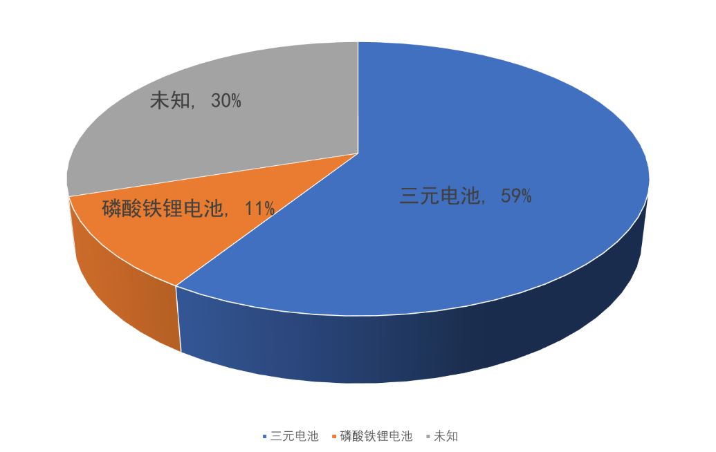 图1显示了2018年以来电动汽车起火事件的触发原因。从中可以看到,充电过程中自燃事故占到总数的29%,静置和行驶中的自燃达到30%,而真正由于外在因素如涉水、碰撞、挤压等造成的自燃事故不到20%,说明造成动力电池起火燃烧的主要原因是其自身,而非外在因素。如果按照电池的种类来划分,在发生事故的电动汽车中,确凿采用三元电池的占59%,采用磷酸铁锂电池的占11%,其它因报道不详而未知。