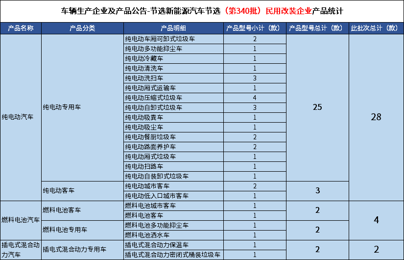 第340批道路机动车辆生产企业及产品-节选新能源汽车范畴的产品——民用改装车生产企业明细