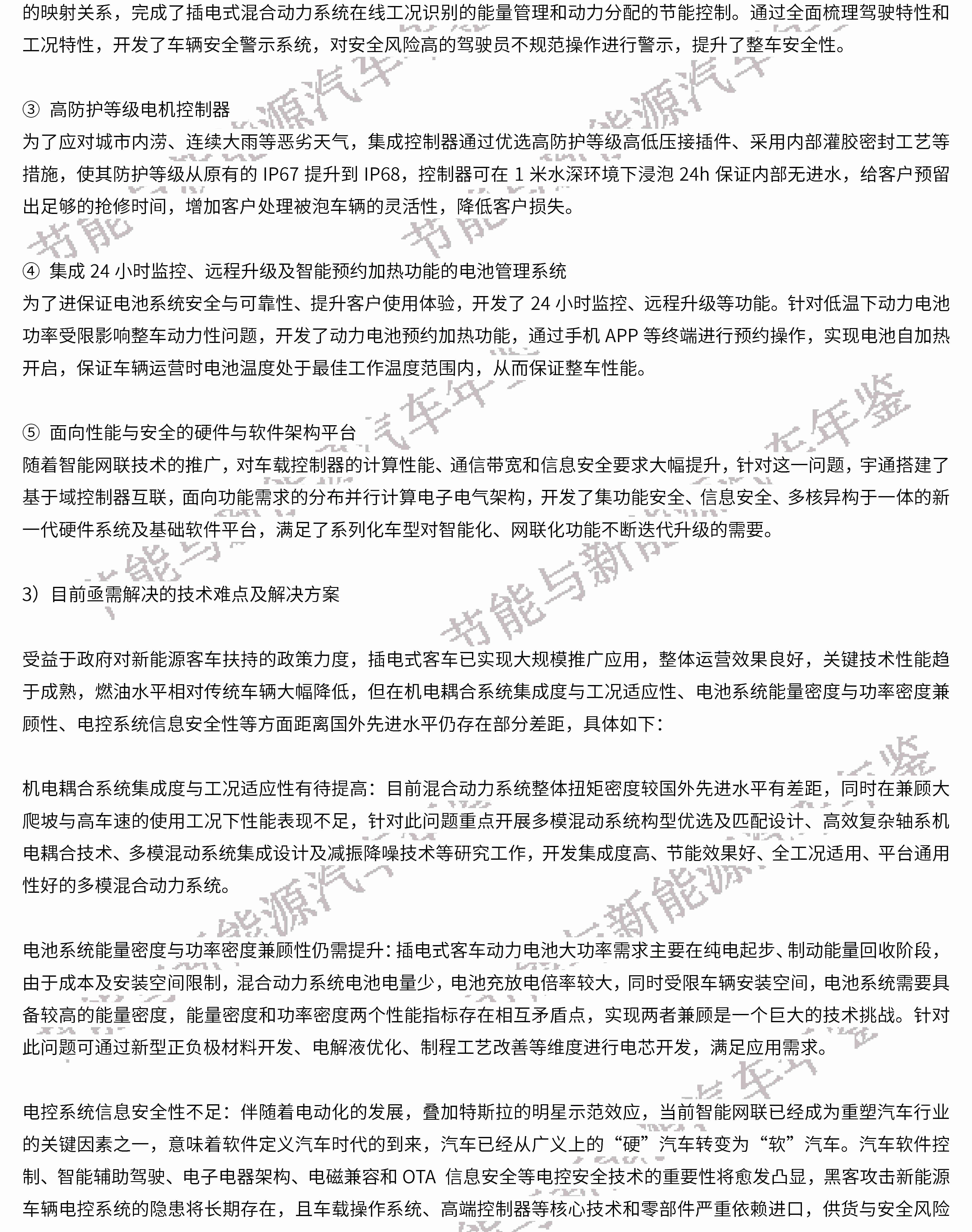 导读:插电式混合动力产品目前在市场上已经规模推广,产品也进入成熟期。随着智能网联技术的推广,智能化技术已渗透到车辆经济性、动力性、安全性、舒适性和操控性等多个领域,宇通在对车辆经济性、可靠性和安全性的持续提升的基础上,大力投入智能化辅助驾驶系统研发,着重围绕360全景环视预警辅助系统、坡度辅助起步系统(HSA)、停车制动系统(Auto Hold)、电子驻车系统(EPB)、碰撞缓解控制系统(CMCS)、油门误踩防护系统(EAPM)和驾驶员行为监控系统(DMS)等智能辅助驾驶技术提升车辆驾驶安全性、舒适性。