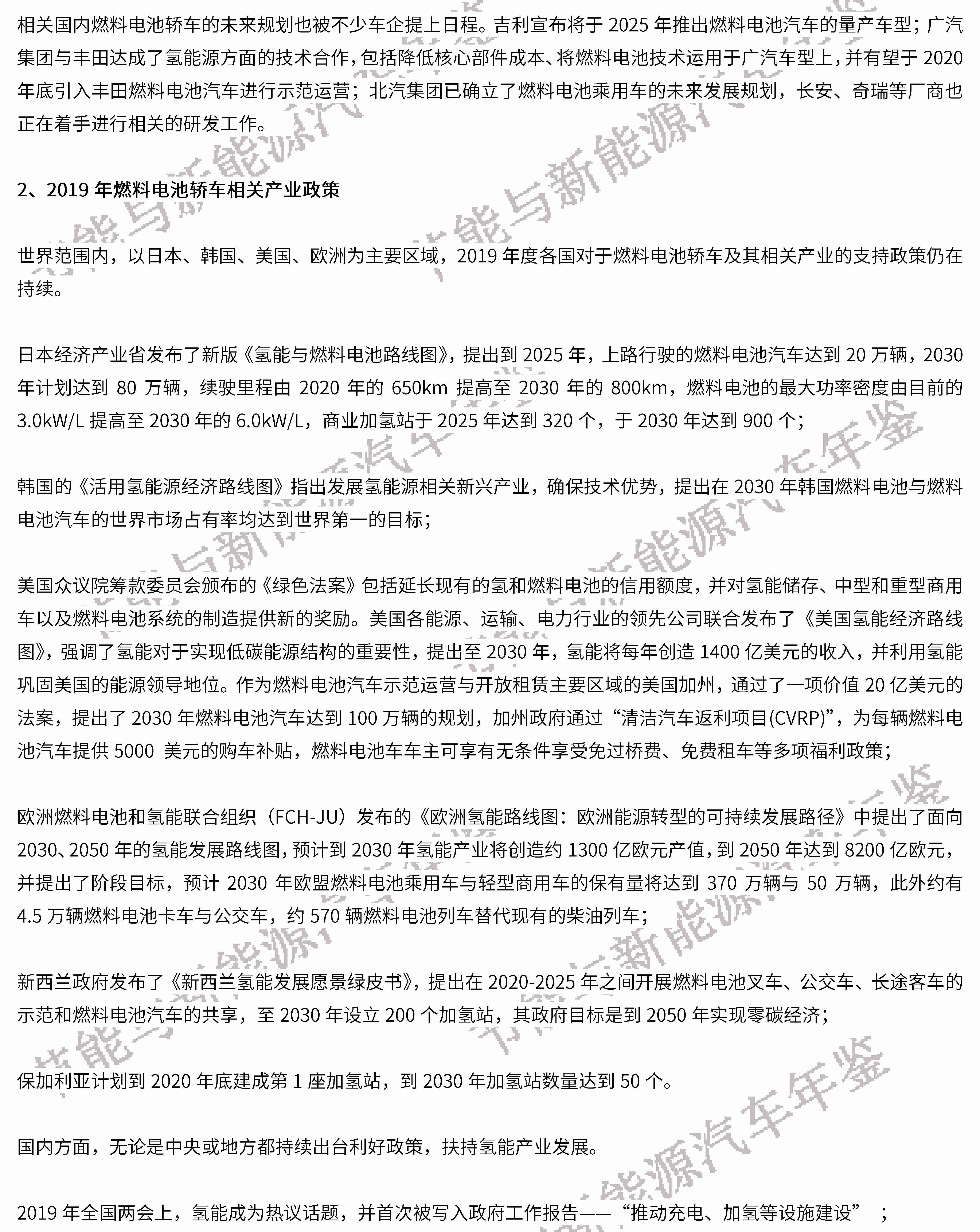 导读:随着燃料电池汽车行业的快速发展,全球各大主机厂纷纷布局燃料电池业务板块。丰田于2019年10月公布了第二代Mirai Concept原型车;本田2020年款Clairty Fuel Cell在美国加州开放租赁;梅赛德斯-奔驰于2019年春季,在德国7个配备加氢站的主要城市区域开放了GLC F-CELL的租赁;宝马于2019年9月推出了一款燃料电池概念车BMW i Hydrogen Next;大众汽车正计划开发第三个电动汽车平台,该平台除电动车外也可以配备燃料电池车型,预计将于2022年问世。