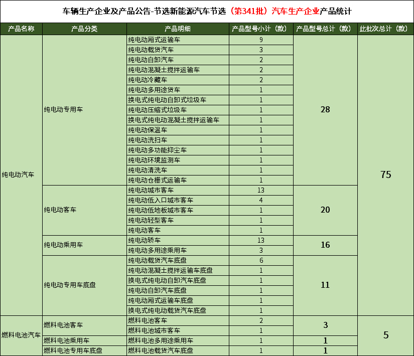 2、燃料种类:本批次纯电动产品共计90款(含乘用车16款、客车21款、专用车42款、专用车底盘11款);燃料电池产品9款(含乘用车1款、客车3款、专用车4款、专用车底盘1款)。