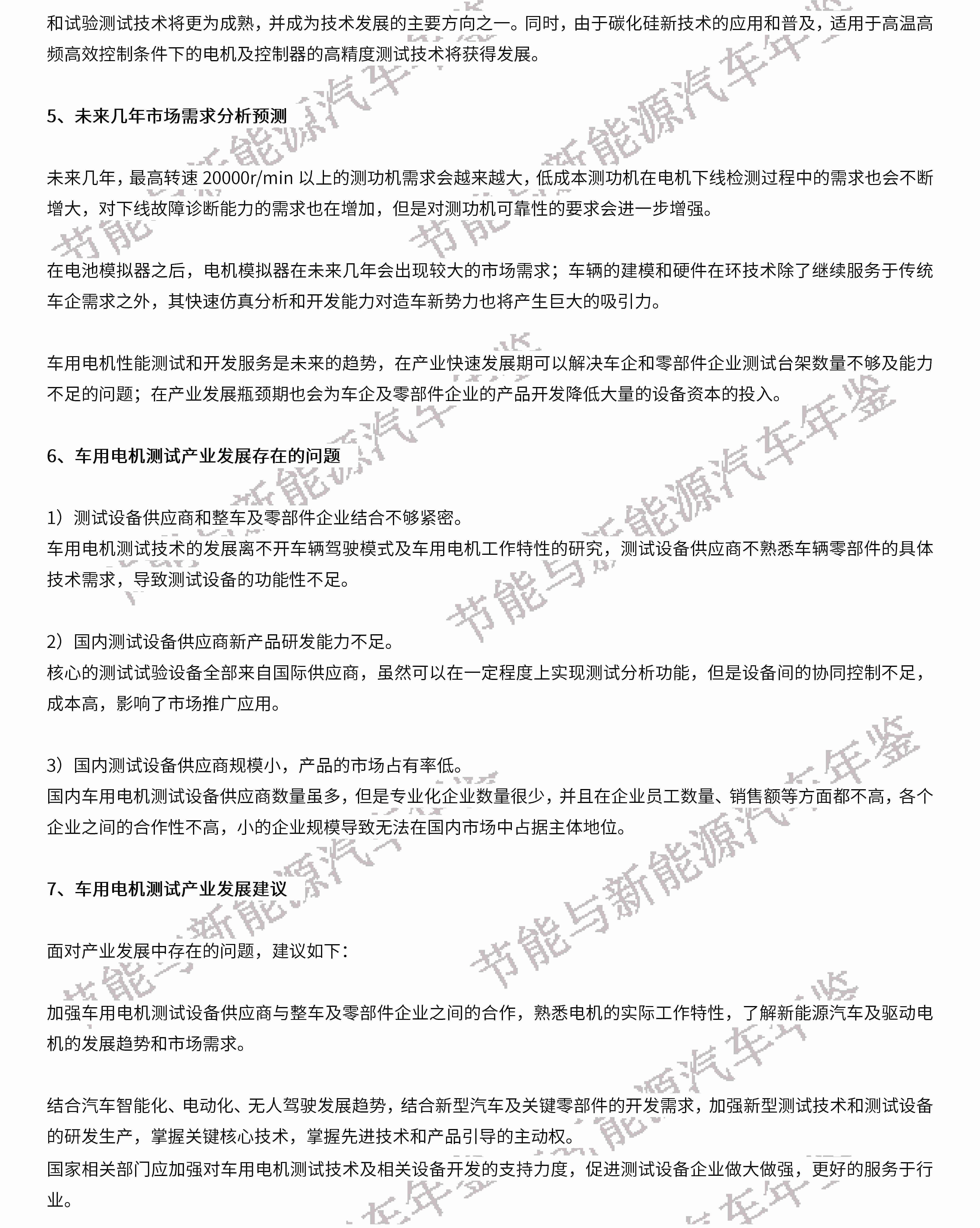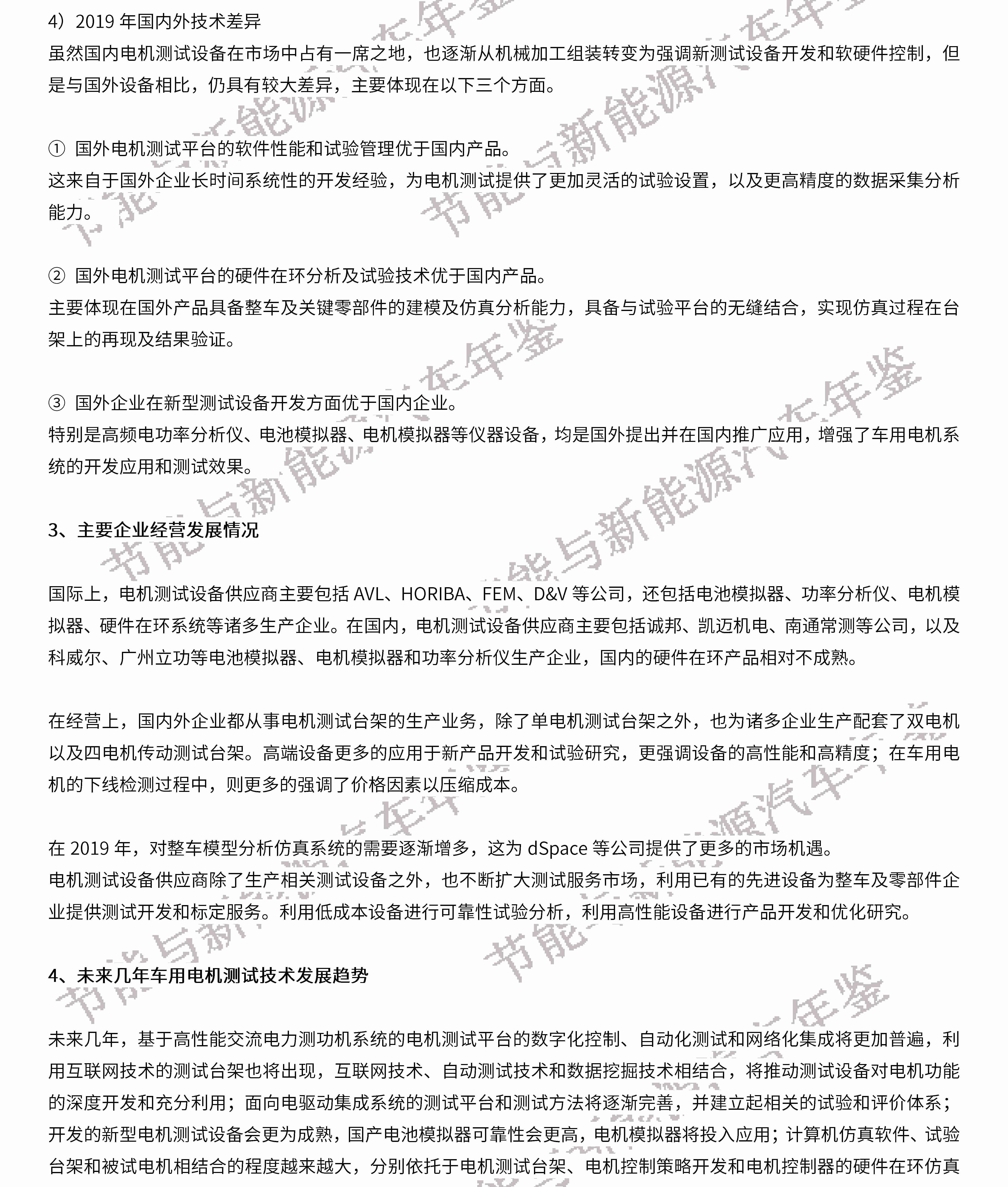 第三,除了国内几个主要的汽车质量检测中心,车用电机测试设备生产厂家以及具有电机检测设备的企事业单位也开始为整车或电机等零部件企业提供检测和标定服务,降低了整车及零部件企业的设备投资负担。