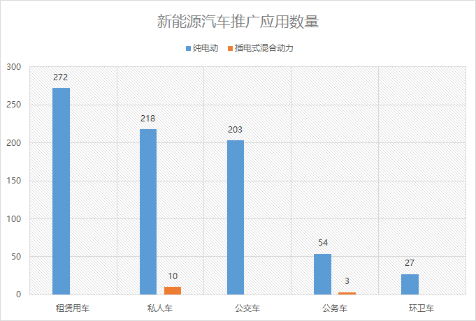 2016年,全市推广各类新能源汽车794辆,包括452辆纯电动乘用车、12辆插电式混合动力多用途乘用车、302辆纯电动客车、1辆插电式混合动力客车、27辆纯电动专用车(折合标准车40.5辆),折合标准车为4133.5辆。