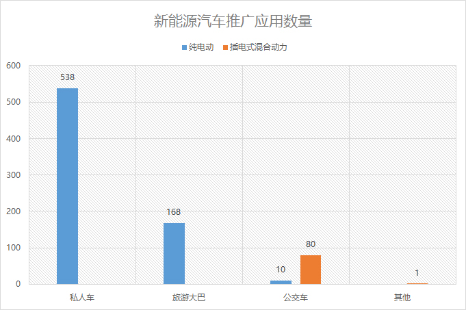 2014~2016累计推广应用新能源汽车2903辆,其中:新能源乘用车1718辆(纯电动1677辆、混合动力41辆)、新能源客车1176辆(纯电动934辆、混合动力242辆)、新能源专用车9辆。