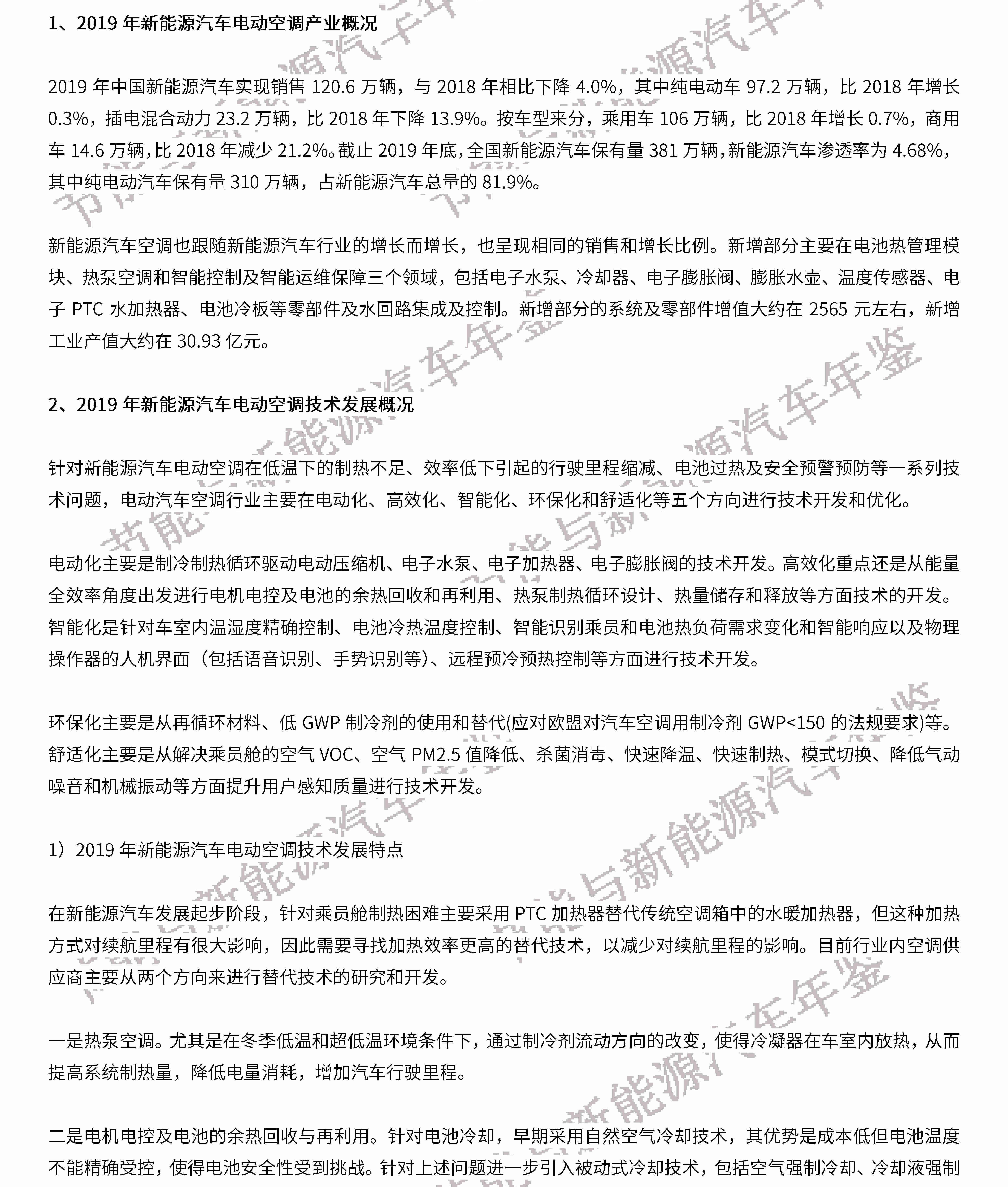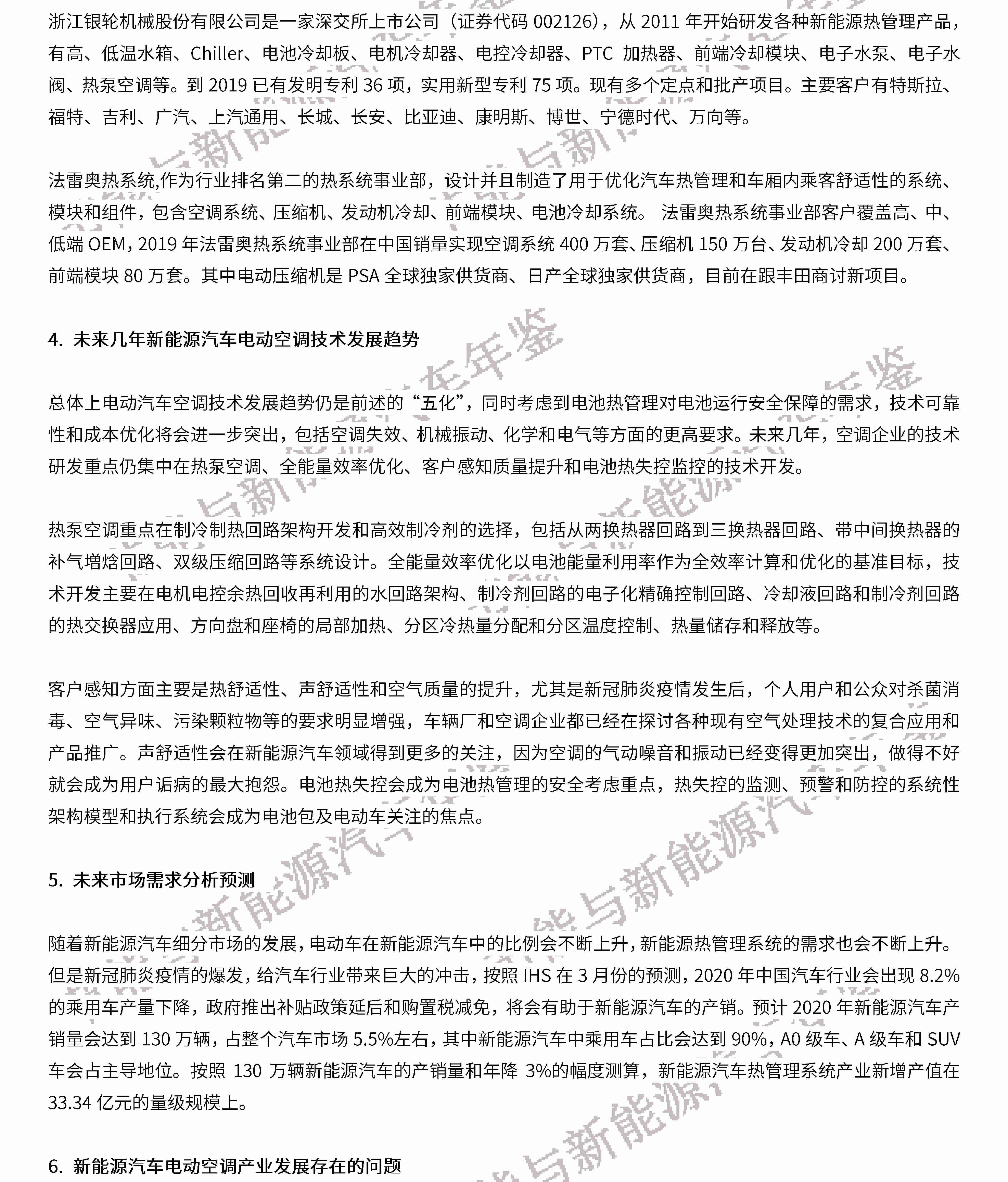 新能源汽车空调也跟随新能源汽车行业的增长而增长,也呈现相同的销售和增长比例。新增部分主要在电池热管理模块、热泵空调和智能控制及智能运维保障三个领域,包括电子水泵、冷却器、电子膨胀阀、膨胀水壶、温度传感器、电子PTC水加热器、电池冷板等零部件及水回路集成及控制。新增部分的系统及零部件增值大约在2565元左右,新增工业产值大约在30.93亿元。