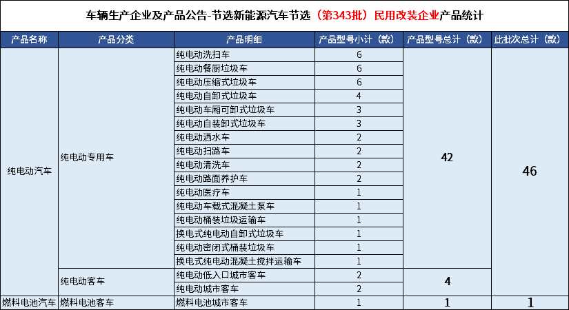 第343批道路机动车辆生产企业及产品-节选新能源汽车范畴的产品——民用改装车生产企业明细