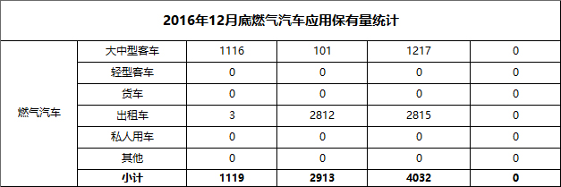 2016年1~12月底广西燃气汽车应用保有量统计如下: