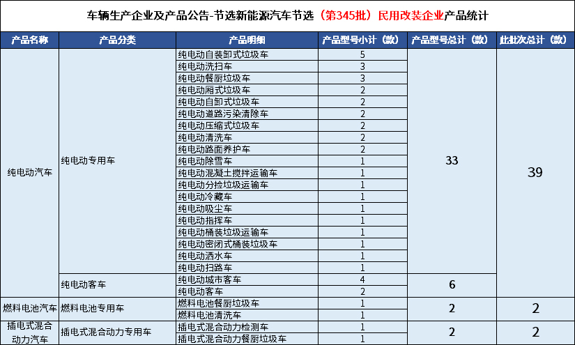 第345批道路机动车辆生产企业及产品-节选新能源汽车范畴的产品——民用改装车生产企业明细