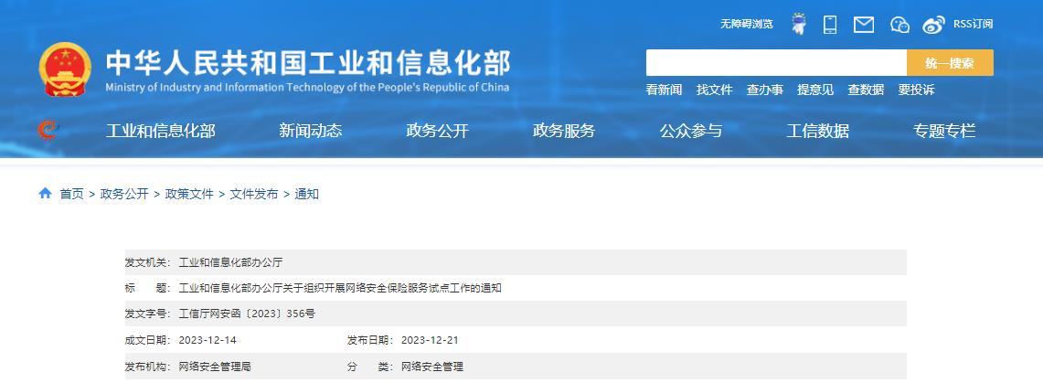 工信部:关于组织开展网络安全保险服务试点工作的通知