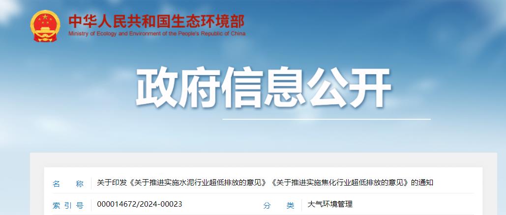 2024年1月19日,生态环境部、国家发展改革委、工业和信息化部、财政部、交通运输部五部门联合发布《关于推进实施水泥行业超低排放的意见》《关于推进实施焦化行业超低排放的意见》。对于清洁运输要求方面,两《意见》分别明确:
