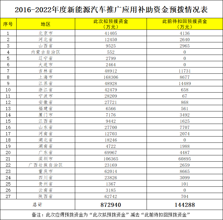 2)2016-2022年度新能源汽车推广应用补助资金预拨情况: