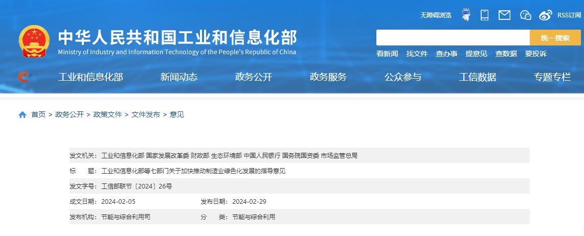 工业和信息化部等七部门关于加快推动制造业绿色化发展的指导意见