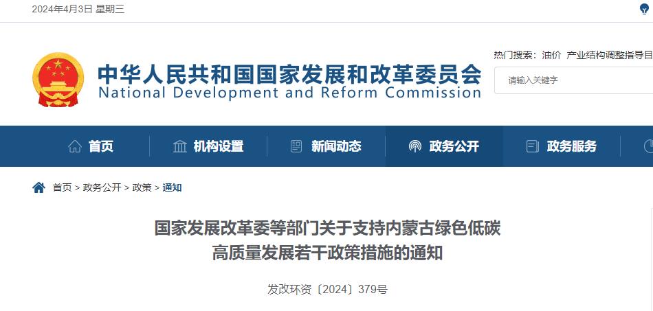 2024年4月3日,国家发展改革委等部门发布《关于支持内蒙古绿色低碳高质量发展若干政策措施的通知》,氢能、充电站、新能源汽车相关方面,《通知》明确: