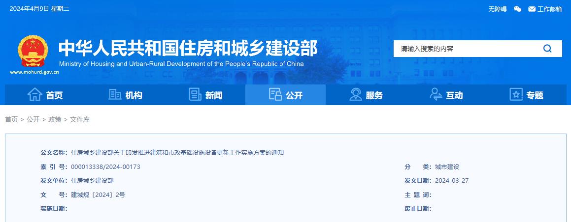 为贯彻落实党中央、国务院决策部署,按照《国务院关于印发〈推动大规模设备更新和消费品以旧换新行动方案〉的通知》(国发〔2024〕7号)要求,有序推动建筑和市政基础设施设备更新工作,经国务院同意,现制定如下实施方案。