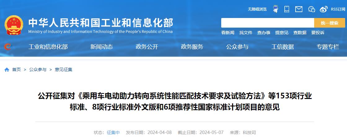 1.《乘用车电动助力转向系统性能匹配技术要求及试验方法》等153项行业标准计划制修订计划(征求意见稿)