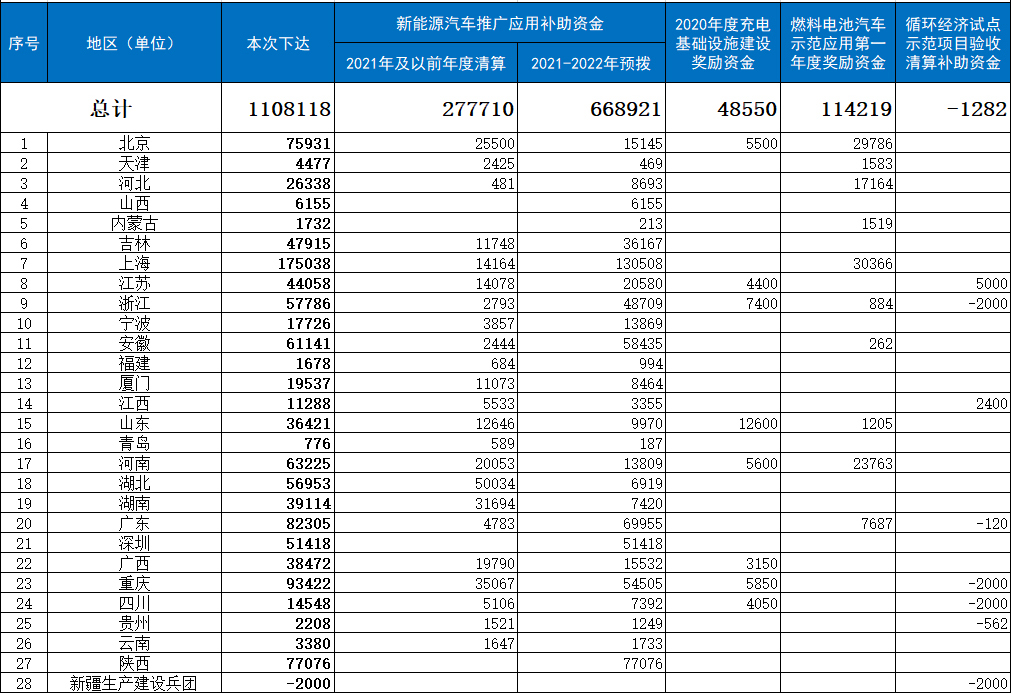 3.2021-2022年度新能源汽车推广应用补助资金预拨汇总表