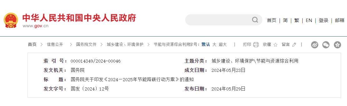 国务院关于印发《2024—2025年节能降碳行动方案》的通知