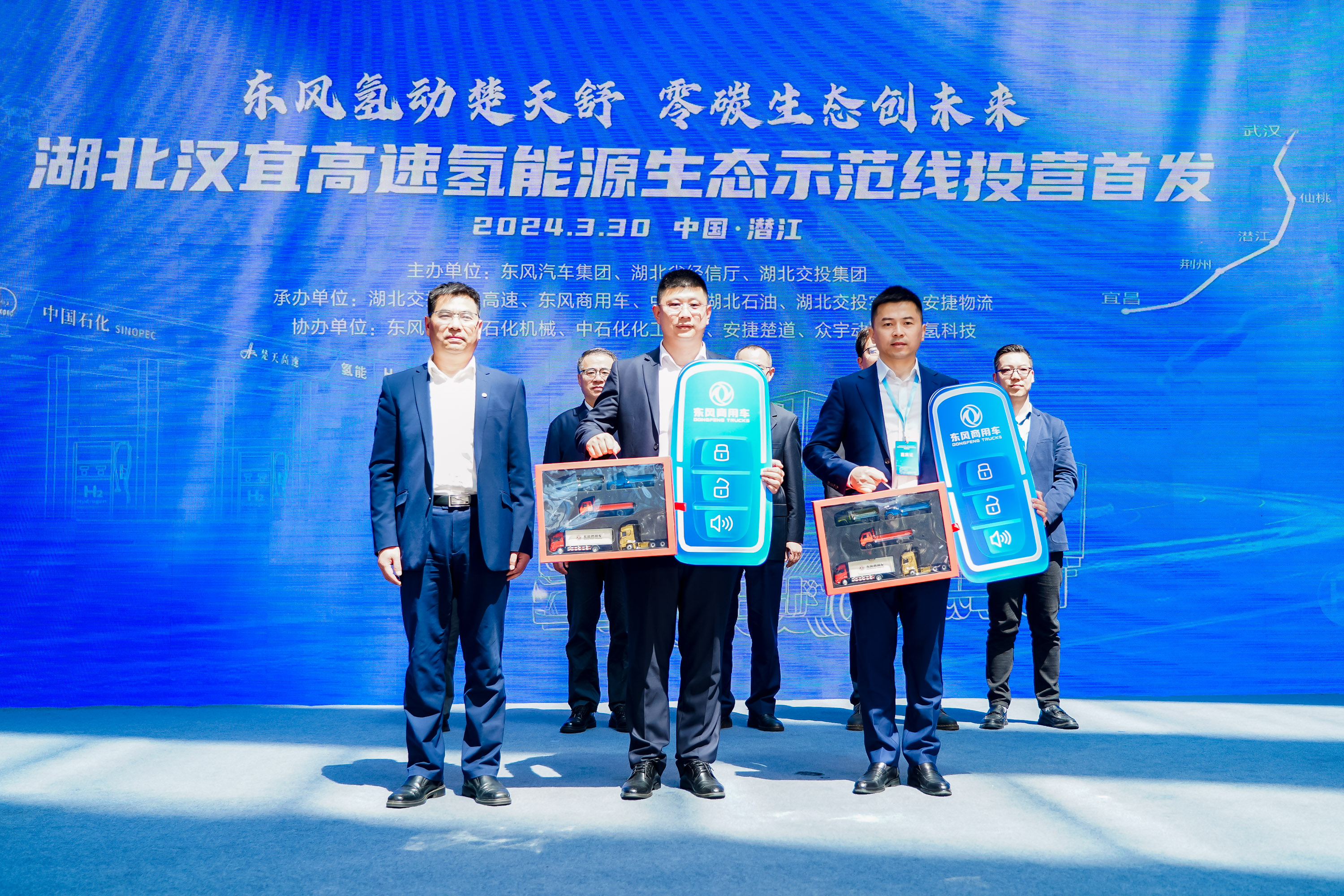 东风氢动楚天舒,零碳生态创未来。3月30日,一场标志着我国氢能产业迈向商业化新阶段的盛会在湖北沪渝高速潜江服务区北区隆重举行。东风商用车携手湖北省交通投资集团有限公司(简称“湖北交投”)共同打造的汉宜氢能示范线正式启动。湖北省政府副秘书长、参事室主任赵俊,东风汽车集团有限公司总经理助理、东风商用车有限公司董事长周先鹏,湖北交通投资集团有限公司党委副书记、总经理叶战平,湖北省经济和信息化厅党组成员、总工程师盛章学,中国石化湖北石油分公司党委书记、分公司代表于海平,省国资委党委委员、副主任周勇士,中国汽车工程学会会士、武汉理工大学汽车工程学院院长、学科首席教授颜伏伍,湖北省潜江市市委书记盛文军,湖北省财政厅二级巡视员刘成安,湖北省商务厅二级巡视员刘道伟,湖北省交通厅道路事业发展中心党委书记、主任曹翃,湖北省襄阳市政府党组成员张斌,湖北省荆州市副市长李敢,湖北省随州市政府党组成员刘军伟,湖北省仙桃市副市长胡军波,东风商用车有限公司总经理张小帆等领导出席活动,共同见证这一具有里程碑意义的历史时刻。