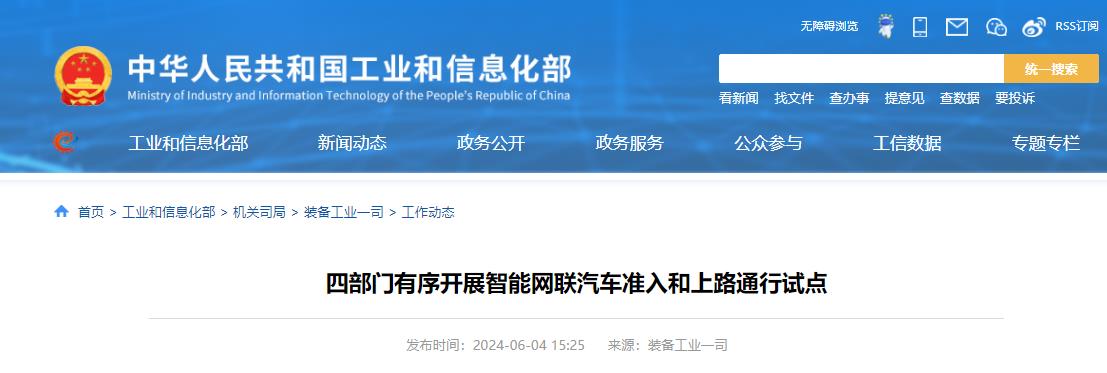 四部门有序开展智能网联汽车准入和上路通行试点工作