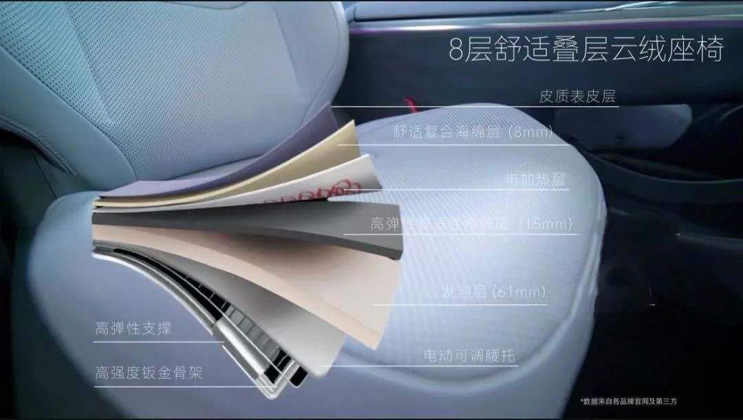 阿尔法T5所搭载的云绒座椅,不仅从外形面贴合人体,内部设计了8层舒适叠层,坐垫叠层总厚度88.2mm,超过很多40万级以上豪华品牌汽车座椅的用料,保证软的同时可以有足够的支撑效果,短途乘坐会很舒适,长途开车久坐也不会有腰酸背痛的现象。