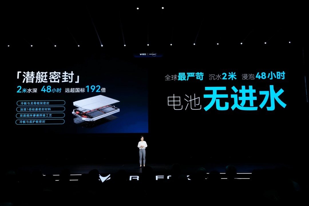 电池底部标配加装了独创的“玄武护甲”,这个护甲运用航天级的材料及工艺,形成了7层防护,强度达到1500MPa,堪比装甲车,还兼顾了绝缘、保温、导热、防腐等四大功能,充分考虑到环境的复杂性。此外,极光电池开创的“太空舱密封”技术。选择高疏水性的硅基材料作为基材,疏水率达97%,在2米水深,48小时淹没测试条件下,滴水未进,堪称电池界的潜水艇,远超行业平均水平。在“玄武护甲”和“太空舱密封”的超强防护下,不论遇到多么复杂的路况和环境,极狐汽车都可以放心的开。