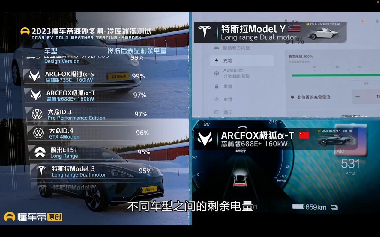 高寒测试领先,冬季续航无忧:在全世界距北极最近的汽车高寒测试比赛场,极狐 阿尔法T 森林版688E+和极狐 阿尔法S 森林版735E+与国内外知名品牌车型展开对比测试。其中,在冷库冰冻续航测试中,所有车型充满电后在-30°恒温冷库中静置12小时,随后在同一场地、同一路线、同一空调制热模式下启动,展开续航大比拼。最终,极狐 阿尔法T 森林版688E+以实测273.7公里的惊艳续航成绩,夺得冠军;极狐 阿尔法S 森林版735E+以实测239.4公里的优异成绩获得季军!