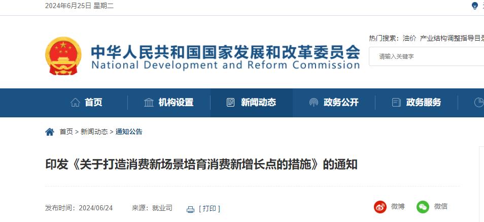 国家发展改革委等部门印发《关于打造消费新场景培育消费新增长点的措施》的通知