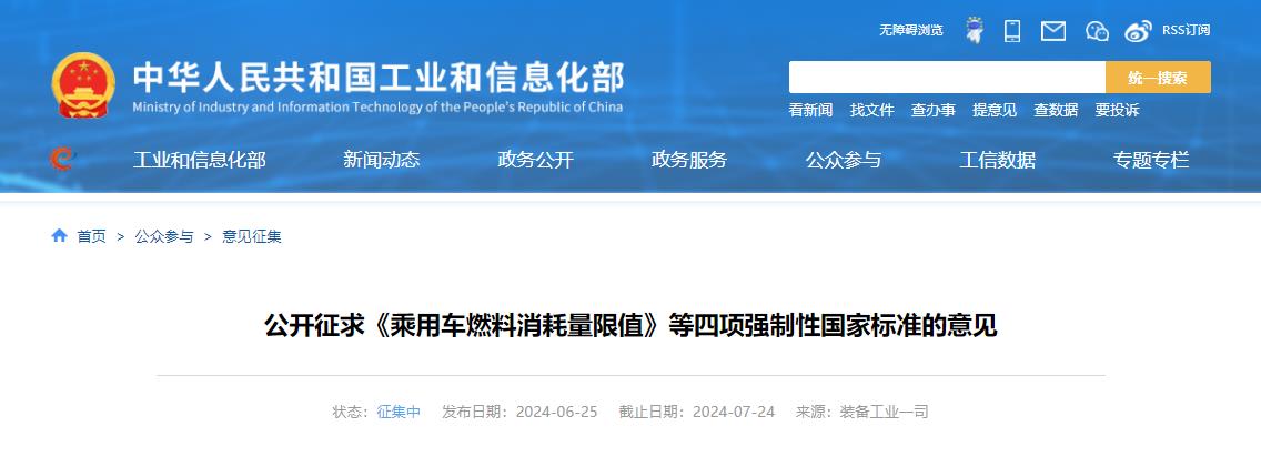 2024年6月25日,工业和信息化部装备工业一司公开征求《乘用车燃料消耗量限值》等四项强制性国家标准的意见,其中,在强制性国家标准《乘用车燃料消耗量限值》中,《征求意见》明确:
