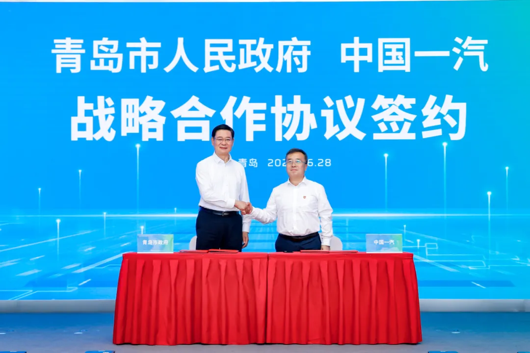 6月28日,中国一汽与青岛市政府战略合作签约暨一汽解放(青岛)商用车开发院揭牌仪式在山东青岛成功举行。山东省委常委、青岛市委书记曾赞荣,青岛市委副书记、市长赵豪志,青岛市委常委、副市长王波,市委常委、秘书长常红军,市政协副主席、崂山区委书记张元升,中国一汽董事长、党委书记邱现东,党委副书记王国强,海外事业总顾问,富奥公司、富维公司董事长胡汉杰出席活动。青岛市、崂山区、即墨区有关部门领导,签约企业、投资者、合作方、项目建设相关方、媒体代表,中国一汽、一汽解放相关单位负责人及员工代表等200余人参加活动。一汽解放总经理、党委副书记李胜主持会议。