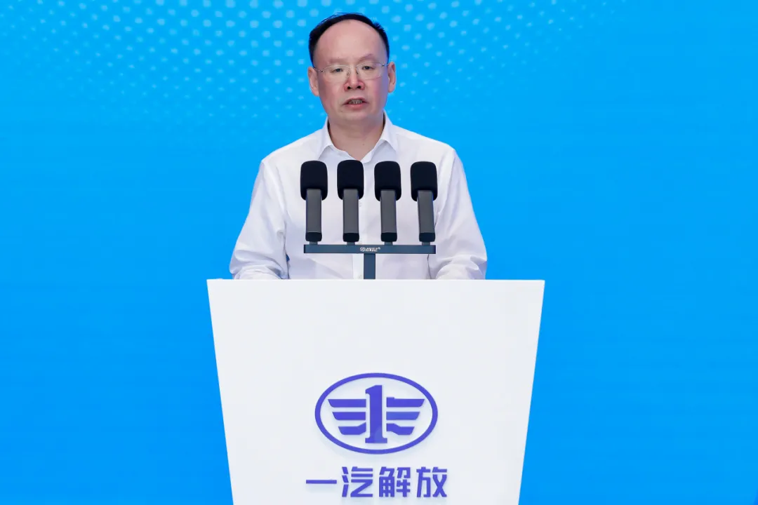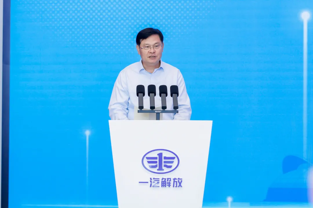 一汽解放党委委员、副总经理季一志现场发布解放新能源战略最新成果、氢能源最新产品。