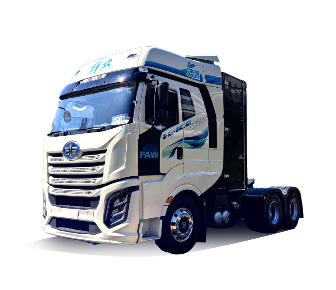 ▲ 解放蓝途“星熠”氢气发动机牵引车