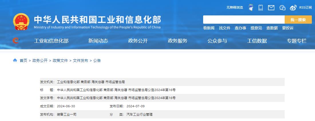 中华人民共和国工业和信息化部 商务部 海关总署 市场监管总局公告