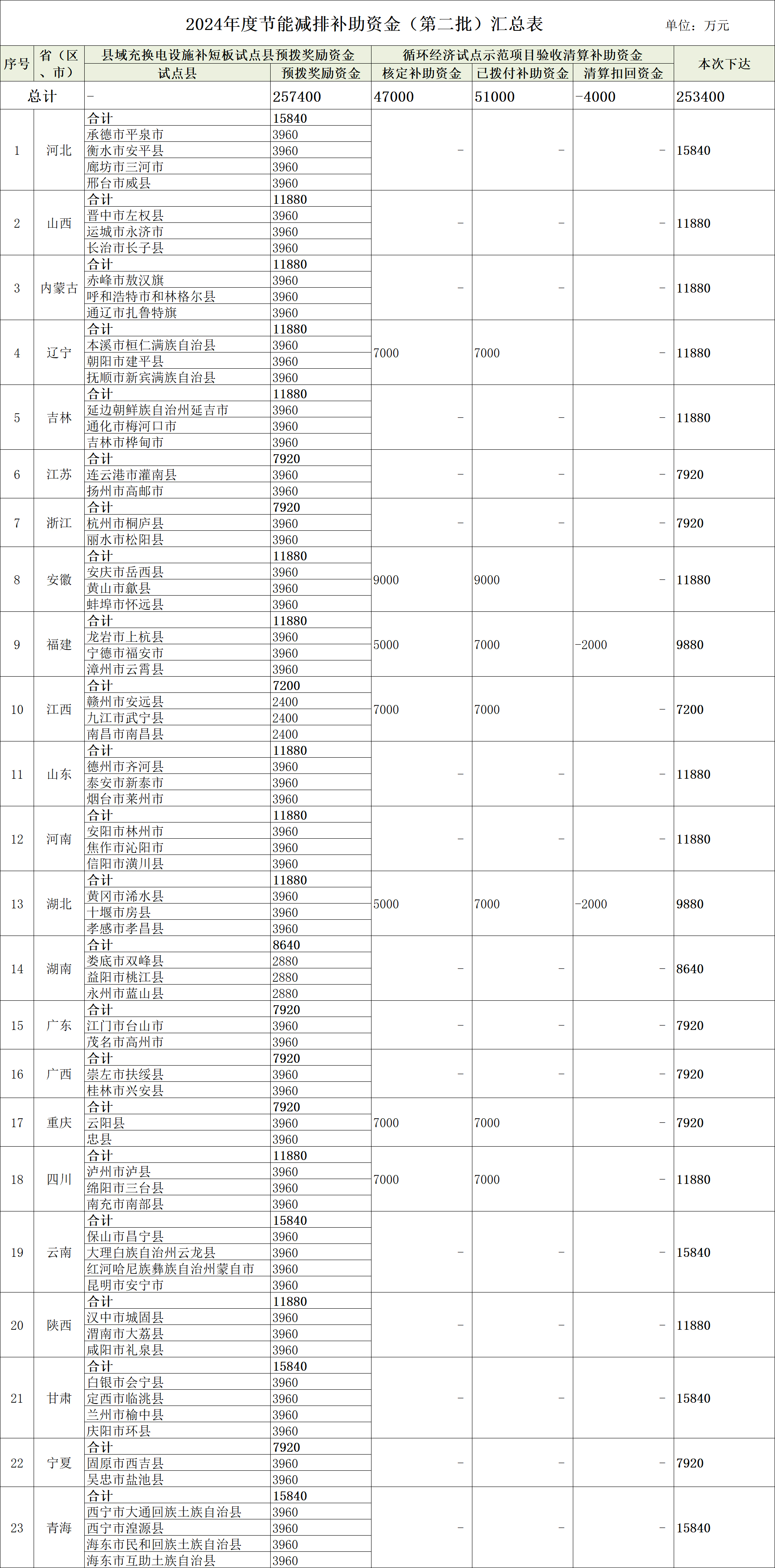 附件:1.2024年度节能减排补助资金(第二批)汇总表