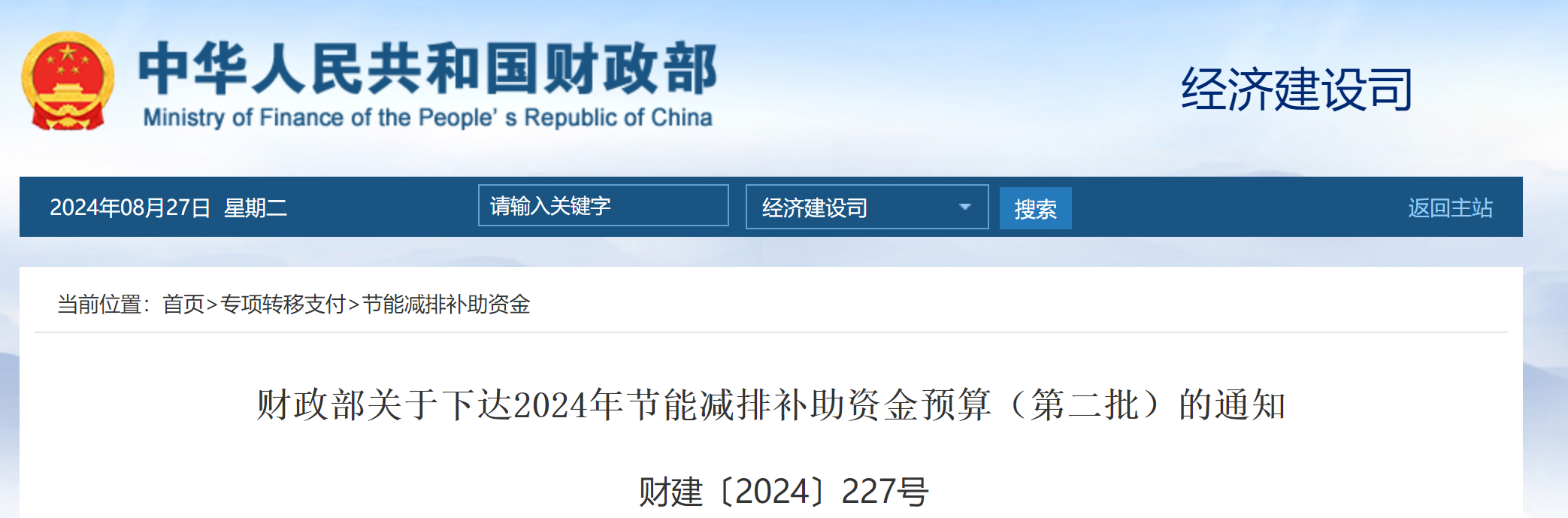 2024年7月29日,财政部发布《关于下达2024年节能减排补助资金预算(第二批)的通知》,《通知》明确:预拨用于县域充换电设施补短板试点奖励资金共计257400万元。